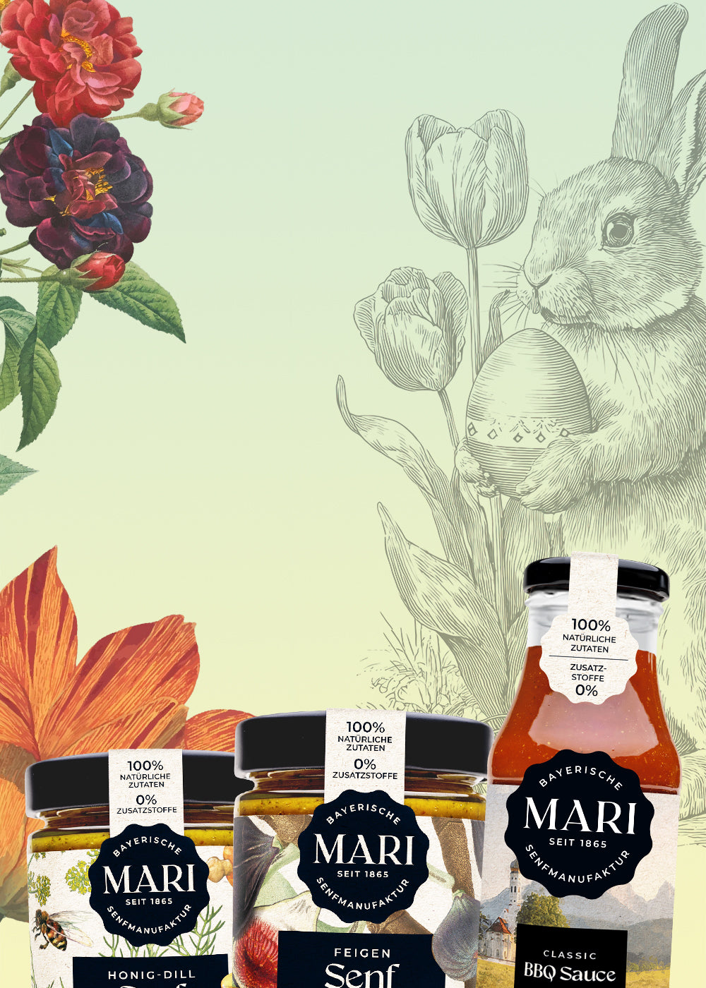 Unser Senfmeister Jürgen Kiefhaber stellt Mari Saucen noch in Handarbeit her. Dafür verwendet er handverlesene Naturprodukte aus Bayern – ohne Zusatzstoffe. Unser Mari Grundrezept geht zurück auf die namensgebende Teisendorfer Gastwirtin Mari. Seit 1865 entsteht Mari Senf damals wie heute vor allem mit Herz und Tradition. Für unsere Kunden verbinden wir nachhaltige Bestandteile mit Freude am Genuss – für Ihre Brotzeit, BBQ oder Salat und Marinaden. So wurde Mari Senf zum Qualitätsführer im Markt.