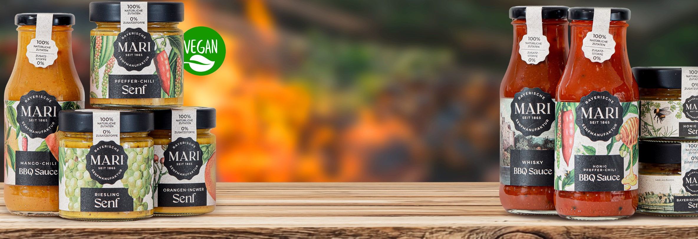 Unser Senfmeister Jürgen Kiefhaber stellt Mari Saucen noch in Handarbeit her. Dafür verwendet er handverlesene Naturprodukte aus Bayern – ohne Zusatzstoffe. Unser Mari Grundrezept geht zurück auf die namensgebende Teisendorfer Gastwirtin Mari. Seit 1865 entsteht Mari Senf damals wie heute vor allem mit Herz und Tradition. Für unsere Kunden verbinden wir nachhaltige Bestandteile mit Freude am Genuss – für Ihre Brotzeit, BBQ oder Salat und Marinaden. So wurde Mari Senf zum Qualitätsführer im Markt.
